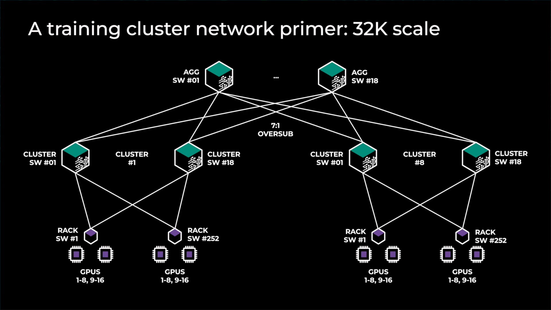 Meta’s 24k H100 cluster design with a 7:1 oversubscription ratio