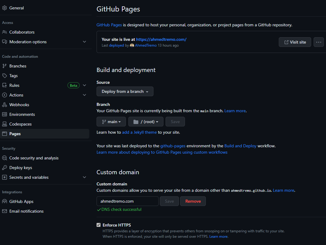 Now that you have your domain’s DNS setup, Let’s head back to Github and configure your Github Pages to use your custom domain.